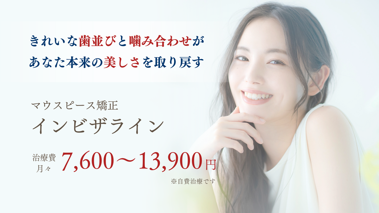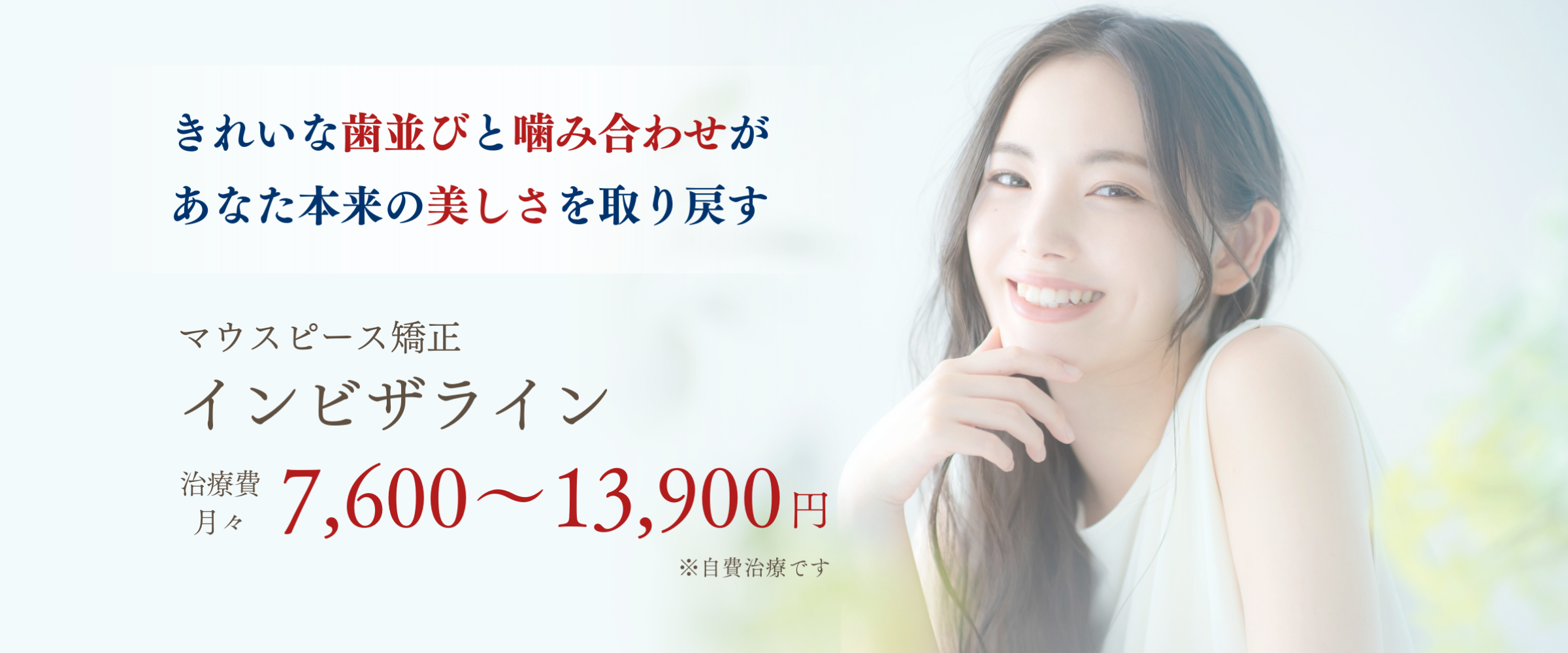 当院は透明で目立ちにくいマウスピース矯正(インビザライン)を月々7,600~13,900円でご提供。患者さまが美しさを取り戻すお手伝いをいたします。