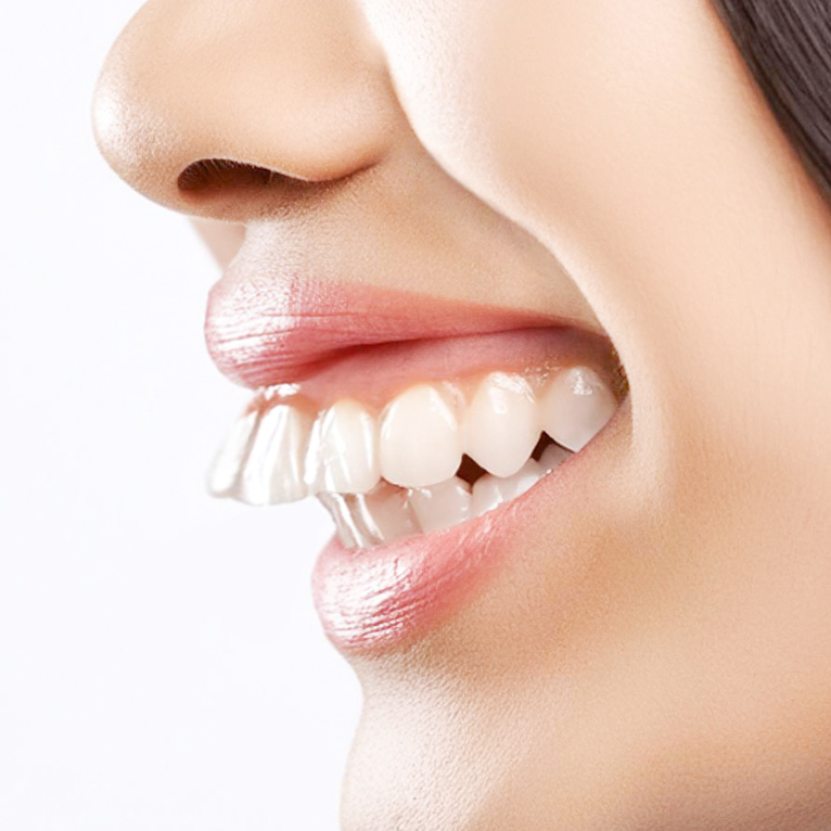 従来の金属を使ったワイヤー矯正に比べると、矯正装置が透明で目立ちにくい点、痛みが少ない点が特徴の歯科矯正です。
