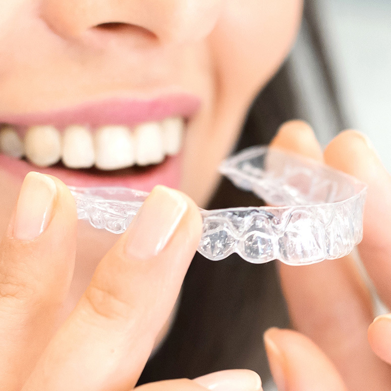 マウスピース矯正は、装置が透明で目立ちにくい点、従来の矯正治療より痛みが少ない点がメリット。